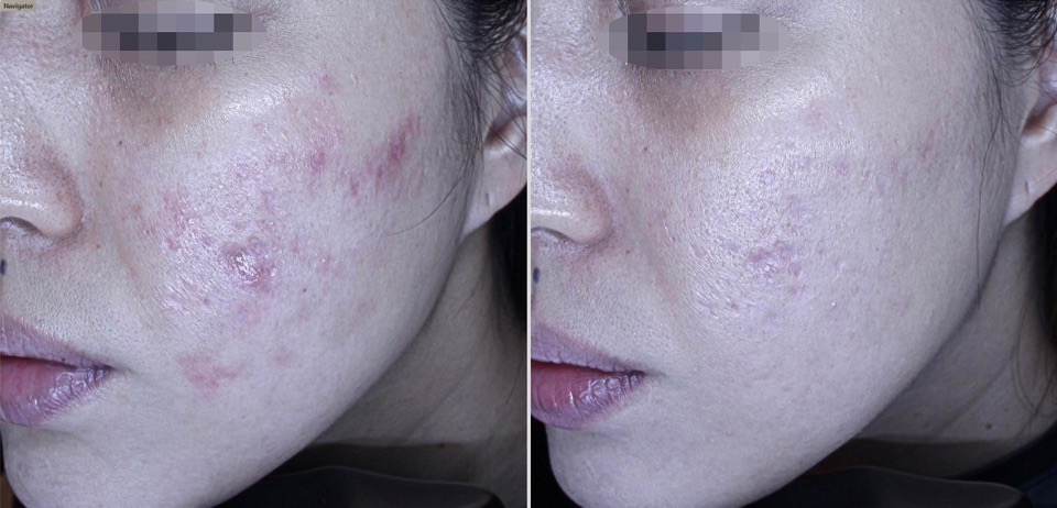 また、ニキビ跡治療(至近距離で薬剤導入を行うコンタクトモード)を受けている方も、3回ほど継続することで、クレーターの改善がご実感いただきやすくなります。