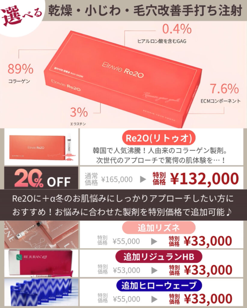 Re2O(リトゥオ)はこの”ECM成分”を直接注入する治療なので、従来の肌育注射よりもさらに美肌効果を感じていただける!と大人気なんですね。