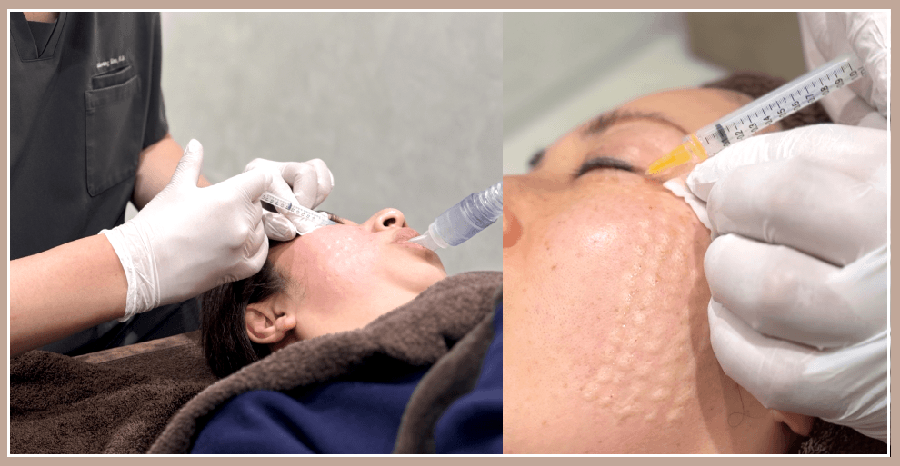 - 痛み:注射針を⽤いて注⼊を⾏うため、チクチクとしたお痛みがありますが、⿇酔クリームを使⽤するためほとんどの⽅が耐えられるお痛みです。痛みに不安がある場合は、ブロック⿇酔や笑気麻酔などをオプションで追加が可能です。麻酔はスタッフにお申し付けください。